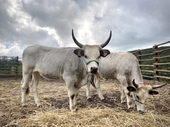 Their sight is majestic, their horns commanding respect and their character wild. On 23.12. our three maremman cows broke free. With combined forces they were recaptured the next day. Benedetta, Doris, Naima and Giulio mastered them. Now they graze contentedly in the spacious paddock called Cervi - close to the barn.